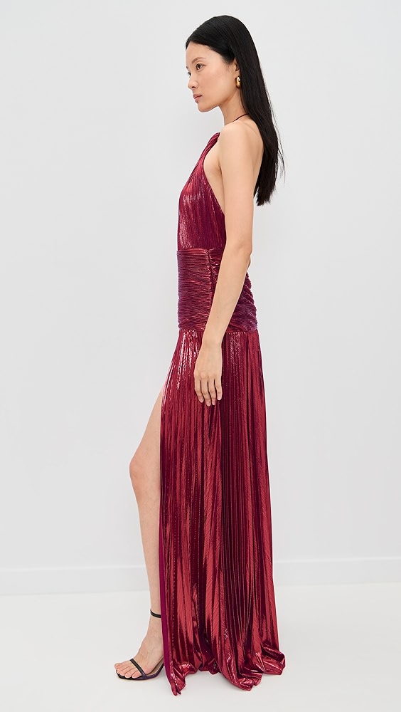 - Allover pleating and metallic finish
